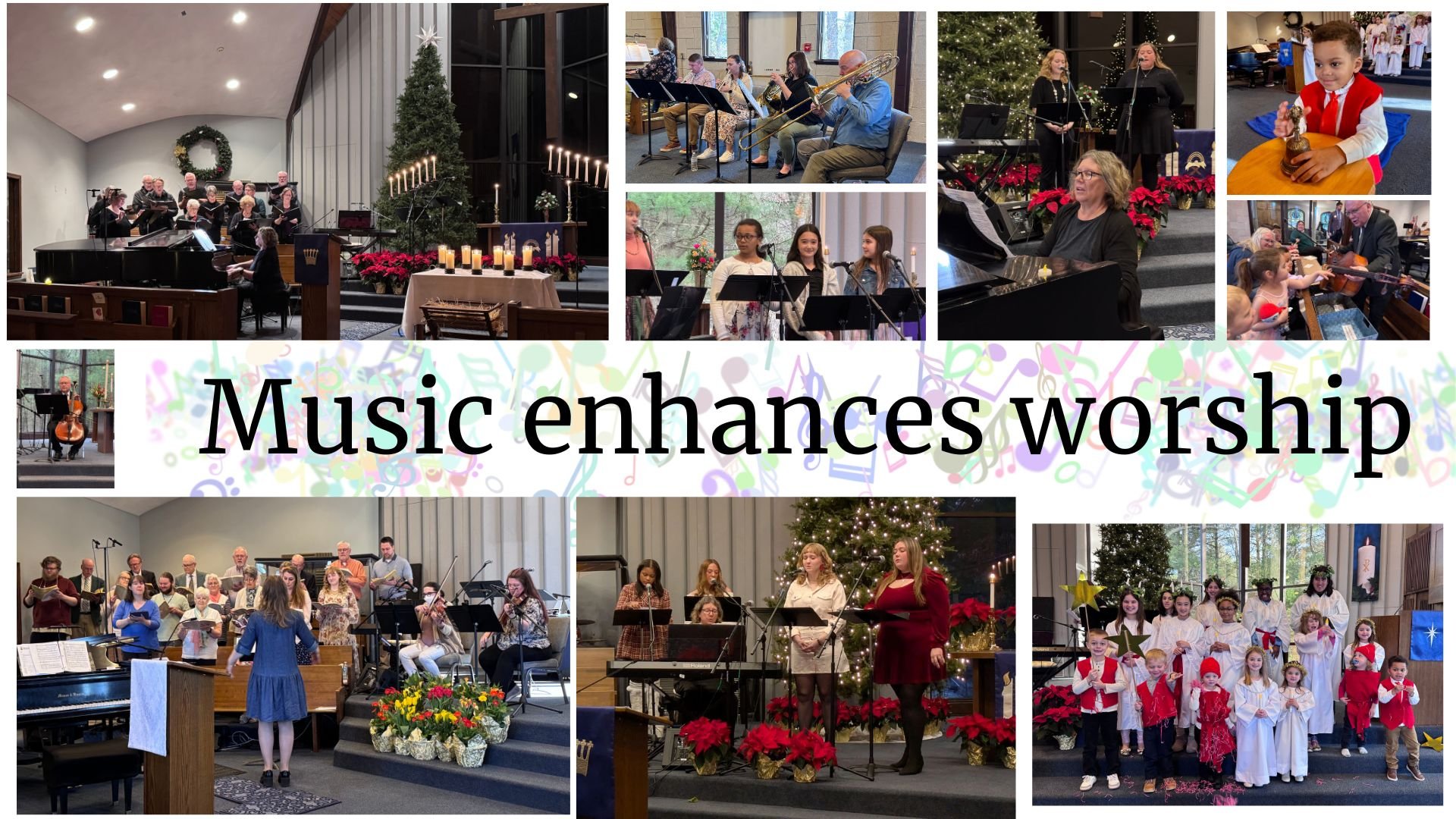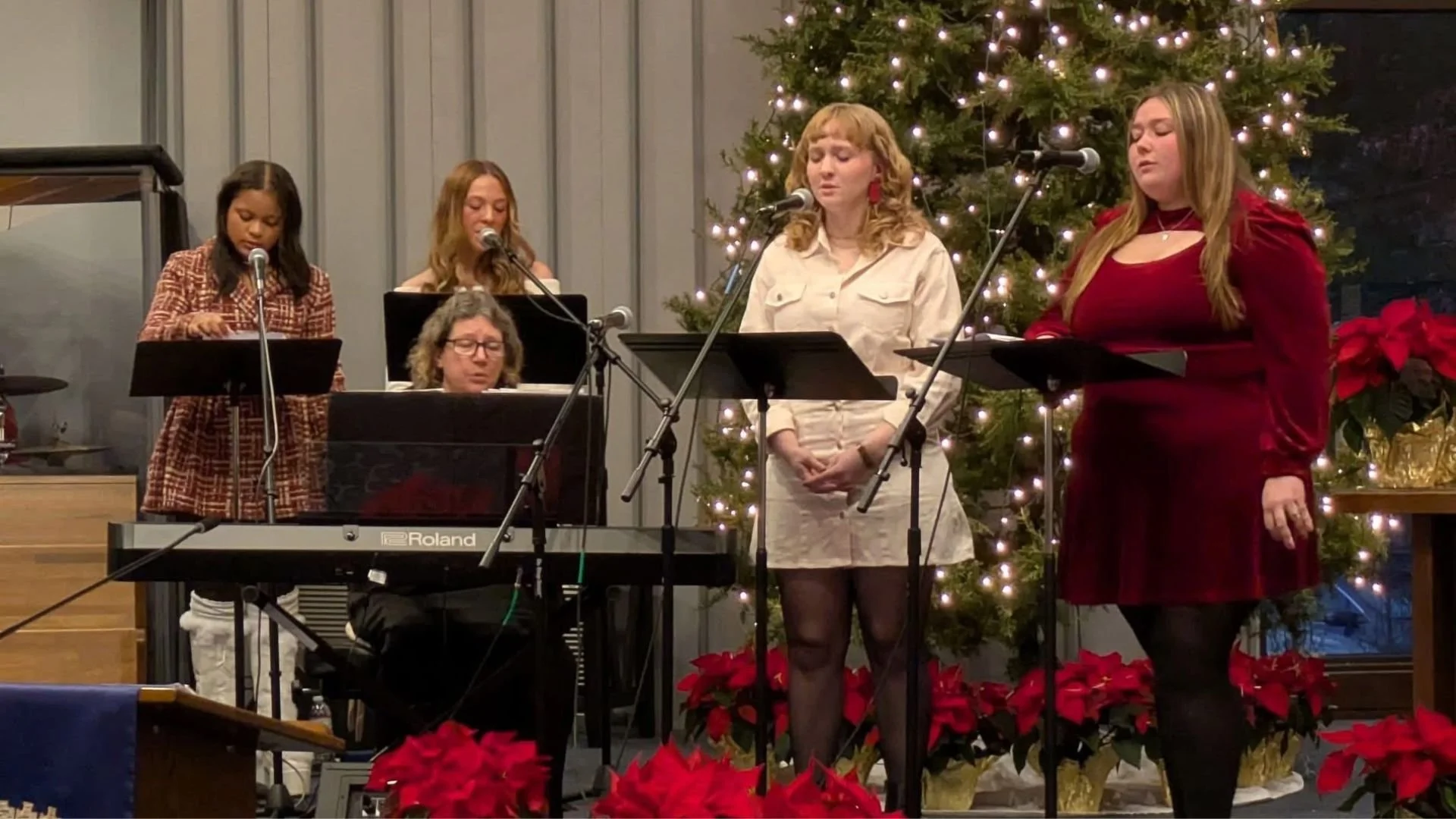 The Praise Team performs at the Christmas Festival, the Christmas Eve service, as well as Maundy Thursday and the first Easter service.